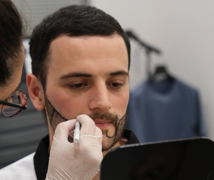 Beard transplantation is generally performed using FUE and Sapphire FUE techniques. In these methods, hair follicles are extracted one by one from the donor area and carefully implanted into the beard area. The follicles are placed in accordance with the natural growth direction of the beard and the facial contours.